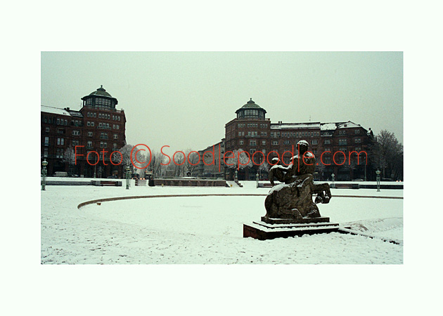 Genau diese Aussicht trieb mich, eigentlich nur pro forma hinaus, um mal schnell ne Runde um den Turm zu drehen- Schnee am Friedrichsplatz kommt ja nicht allzu häufig vor. In fotogener Darreichungsart noch weniger.