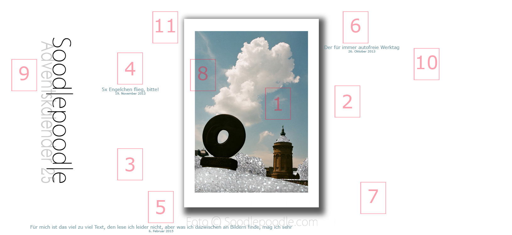 Die Idee kam mir, weil ich den Post und die Story von der Winter-in-Mannheim-am-Wasserturm-Karte vermißte und dies nun mit der Wiederveröffentlichung von 5x Engelchen flieg, bitte! am ursprünglichen Platz im November 2013 nachhole. Darüber ergab sich ein Blick über dieses Archiv, wobei mir einige ebenfalls schmerzlich vermißte Überschriftenwerke 😉 auffiielen.
