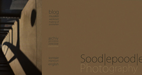 Ein paar Tage später bei der Revision dann völlig geklärt in Lay-Out, Aufteilung und Motivauswahl, die sich dann auf das Wesentliche konzentriert, das ursprünglich Verspielte nur noch sehr stilisiert in den Farben des "blog"s beibehält.. Dazu natürlich diverse Start- und Menuebilder, die man alle hier ansdehen kann.